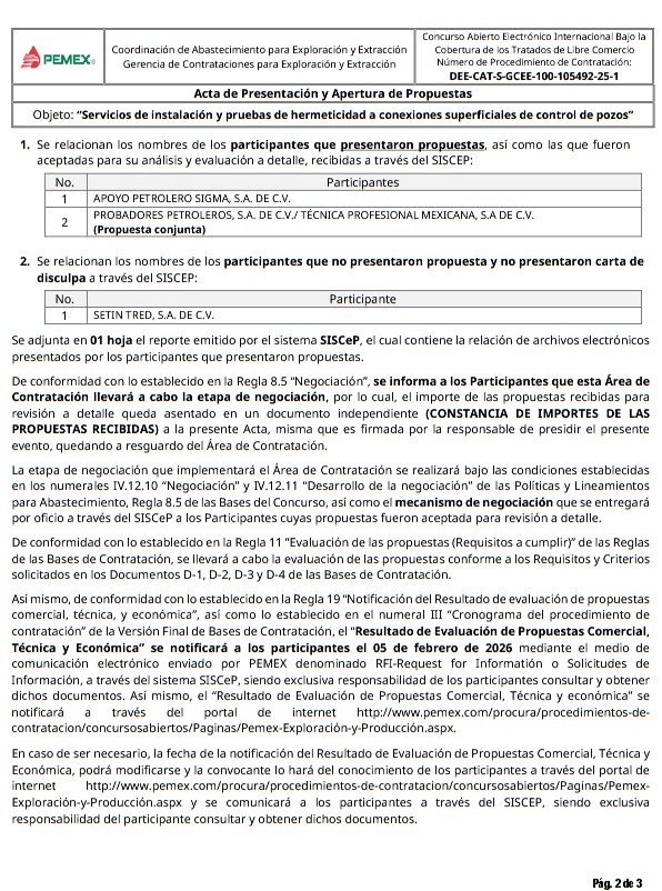 Denuncia al 9933989844… 🚩⚠️ ¡Doble dedazo sin competencia para SIGMA, PROBADORES PETROLEROS y TPM por 364 MDP en Pemex! Sin rivales empresariales y mucho menos transparencia al ocultar los montos económicos violando las leyes y reglamentos de máxima transparencia en el acta de apertura de propuestas, hubo una doble adjudicación derivado del fallo en la licitación DEE-CAT-S-GCEE-100-105492-25-1 para servicios de instalación y pruebas de hermeticidad a conexiones superficiales de control de pozos, ambos con vigencia hasta el 31 de diciembre de 2027. El Contrato 1 fue para Apoyo Petrolero SIGMA por 145,624,008.00 pesos y el Contrato 2 fue para la propuesta conjunta de Probadores Petroleros/Técnica Profesional Mexicana por 218,436,012.00 pesos respectivamente. En cambio, Probadores Petroleros, representada por Luis Arturo Garza Carrillo y Antonio Martiniano Valderrabano Hernández, con este lleva 5 contratos con @Pemex : 1 (424042833) con EPN/Treviño, 3 (644014806, 641002832 y 644014806) con AMLO/Agrónomo y 1 (el recién asignado) con Sheinbaum/Padilla por un total de 547,847,118.65 pesos. Por su parte, Técnica Profesional Mexicana, representada en sus convenios con @Pemex por Abraham Grajales Lagunes, llevan 3 contratos formalizados y vigentes. Los contratos 641003818 y 651005600 con AMLO/Agrónomo y el recién asignado con Sheinbaum/Padilla. Cabe mencionar que Técnica Profesional Mexicana participó en propuesta conjunta -como lo hizo en la reciente asignación- con Probadores Petroleros, Integración y Mantenimiento Industrial, y Petroalliance México en el contrato 641003818 para “servicio de taponamiento y abandono para pozos terrestres de los Activos de Producción Región Sur (Paquete Norte)” vigente del 08/09/2023 al 01/06/2026 y que fue entregado por @Pemex por Adjudicación Directa por 289,153,483.7 pesos. En el caso de Apoyo Petrolero SIGMA, aunque no hay contratos disponibles a consulta entre la empresa con @Pemex , en las etapas de aclaración de dudas con preguntas y respuestas, @Pemex le reiteró que debía presentar evidencias de haber tenido contratos con alguna subsidiaria en el pasado (2da aclaración de dudas, pregunta 1); además le rechazó 12 de 20 preguntas técnicas e intentos de cuadrar el concurso a su favor; y en 2 preguntas (6 y 7) @Pemex le reiteró que debe contar con los equipos que se indican en los anexos DT-4 y B. En tanto Probadores Petroleros en la 2da aclaración de dudas recibió respuestas negativas en 3 aclaraciones, 1 positiva donde @Pemex aceptó “en cuanto a qué debe de tener la infraestructura necesaria para la ejecución de las pruebas hidrostáticas a realizarse, debiendo contar con el equipo de levante que cumpla con la capacidad de carga adecuada, la cual puede ser superior a las 20 toneladas y dependiendo en donde se realicen las pruebas, no impactando la condición de propias o arrendada”. Atención @Claudiashein @MarcelaVilleg15 @CNE_Mex @SENER_mx @GobiernoMX @FGRmexico @LuzElena_GE @ASF_Mexico @SCJN @STPS_mx @Tu_IMSS @SEMARNAT_mx @agencia_asea @CENAGAS_mx @IMPetroleo @SATMX @Hacienda_Mexico @BuenGobierno_mx @Centrofcrl #OIC #UIF #OmarReyesColmenares …Zas!!!