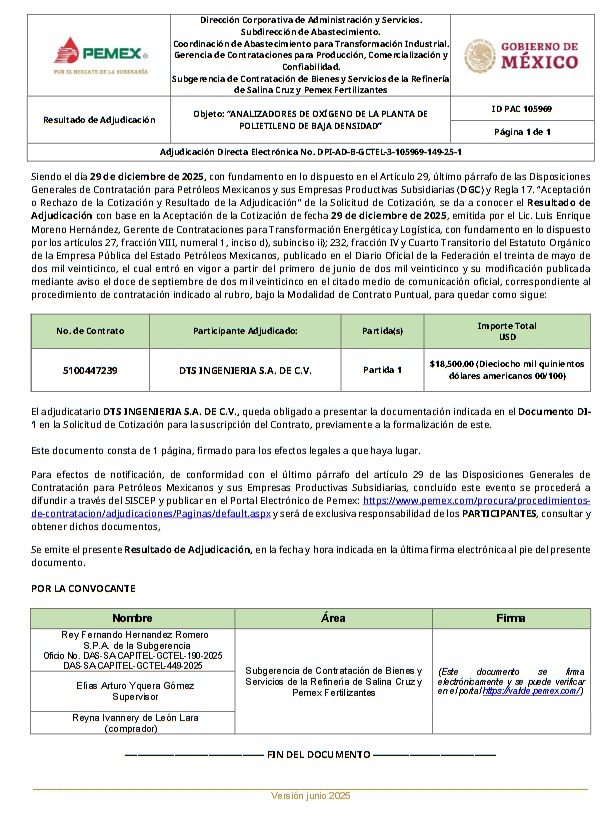 Denuncia al 9933989844… 🚩⚠️¡DTS INGENIERÍA: Contratación hormiga Pemex por 6 MDP! Alejandro Sánchez Sibaja, desde una casa sencilla que ni banqueta tiene en Cosoleacaque, Veracruz, que tiene registrada como el domicilio de la empresa DTS Ingeniería, recibió la Adjudicación Directa del procedimiento DPI-AD-B-GCTEL (Luis Enrique Moreno Hernández) 3-105969-149-25-1 contrato 5100447239 para analizadores de oxígeno de la planta de polietileno de baja densidad, vigente del del 13 de enero al 12 de abril de 2026, el acta de la asignación fue fechada el 29 de diciembre de 2025. El acta de fallo de este fue avalada con las firmas de los funcionarios Rey Fernando Hernandez Romero de la Subgerencia de Contratación de Bienes y Servicios de la refinería de Salina Cruz; Elías Arturo Yquera Gómez, supervisor; y Reyna Ivannery de León Lara (comprador). Al amparo de la presente administración, desde esa humilde casita ubicada en la calle Emiliano Zapata de la colonia Cerro Alto en Cosoleacaque, Veracruz, Sibaja ha ejecutado 19 contratos con este en @Pemex que suman 6,110,996.92 pesos. Aunque la mayoría no rebasan el medio millón de pesos, estos contratos han sido constantes (2 con EPN/Treviño, 16 con AMLO/Agrónomo y 1 Sheinbaum/Padilla). Los números de contratos son: 5100433445, 5100433416, 5400031129, 5100433411, 5100433607, 5400031182, 5100434196, 5100434420, 5100435734, 5100436122, 5100437695, 5100439163, 5100439228, 5100439155, 5100439230, 5100440733, 5100431793 y 5100431794. De estos 10 fueron por Adjudicación Directa, 8 por Invitación Restringida y 1 por Acuerdo Referencial (Acref). Aunque la empresa de Sibaja está activa desde el sexenio de EPN, en más de 8 años tampoco han podido registrar un sitio web que dé credibilidad a la empresa. Por último, acorde con la contratación hormiga, DTS Ingeniería resultó todólogo, le piden todo tipo de suministros como analizadores de oxígeno, equipos de calibración , suministro de transmisores ACREF-B010-2019, bandas para los aeroenfriadores, material de vidrio para las pruebas de los diferentes laboratorios, posicionadores, convertidores de corriente-presión, filtros reguladores, rotámetros de control de potencia para la u-900 de la planta Hidros II, entre otras muchas cosas. atención @Claudiashein @MarcelaVilleg15 @CNE_Mex @SENER_mx @GobiernoMX @FGRmexico @LuzElena_GE @ASF_Mexico @SCJN @STPS_mx @Tu_IMSS @SEMARNAT_mx @agencia_asea @CENAGAS_mx @IMPetroleo @SATMX @Hacienda_Mexico @BuenGobierno_mx @Centrofcrl #OIC #UIF #OmarReyesColmenares …Zas!!!
