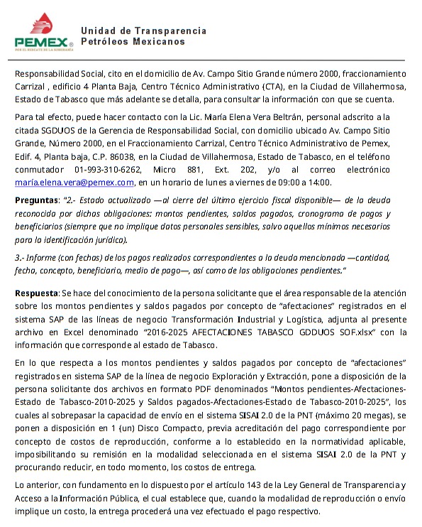 Denuncia al 9933989844… 🚩⚠️💰‼️¡Tabasco, marginado en pagos por afectaciones de PTI y PLOG; niegan cifras de PEP! Apenas el pasado 16 de febrero 2026, el gerente de Responsabilidad Social (GRS) @Pemex , César Raúl Ojeda Zubieta, aseguró que no había renunciado porque ya estaba pagado más del 90% de la deuda de 400 millones de pesos -que reveló a finales de 2025- por pagos por afectaciones en comunidades por la actividad petrolera en Tabasco, entre otras entidades federativas. Lo que no especificó es si los 400 millones de pesos engloban todas las filiales de @Pemex (PEP, PTI y PLOG); sin embargo, según los números de @Pemex Transformación Industrial (PTI) y Pemex Logística (PLOG) en 2024 reconocen un adeudo total por afectaciones y reclamaciones en Tabasco por 61,271,338 pesos, de los que pagaron 58,117,823 pesos y faltaron por pagar 3,153,515.85 pesos. Y de enero a octubre de 2025, PTI/PLOG reconocen un adeudo total por afectaciones y reclamaciones en Tabasco por 85,202,178.45 pesos, de los que pagaron 31,054,579.45 pesos y faltan por pagar 54,147,599 pesos a los que si le sumamos el adeudo pendiente de 2024, daría una suma de 57,301,114.96 correspondiente a los municipios de Centro, Cunduacán, Jonuta, Macuspana, Huimanguillo y Comalcalco, entre otros. Asimismo desde enero 2016 en el sexenio de Enrique Peña Nieto a octubre de 2025, actual sexenio de la presidenta Claudia Sheinbaum Pardo, PTI/PLOG suman una compensación pagada a particulares por 552 millones de pesos. Datos que reveló la petrolera nacional en respuesta a la solicitud de información 340023800183625. Por año PTI/PLOG reportan que fueron pagadas indemnizaciones: 1.- 2016 por 78,849,035.83 pesos. 2.- 2017 por 53,838,502.76 pesos. 3.- 2018 por 55,478,386.79 pesos. 4.- 2019 por 54,254,452.78 pesos. 5.- 2020 por 57,510,331.25 pesos. 6.- 2021 por 42,201,989.11 pesos. 7.- 2022 por 69,298,861.33 pesos. 8.- 2023 por 48,754,279.15 pesos. 9.- 2024 por 61,271,338.08 y quedaron pendientes 3,153,515.85 pesos. Y 10.- 2025 por 85,202,178.45 y quedan pendientes 54,147,599 pesos. En ningún año se rebasó el umbral de los 100 millones de pesos pagados. Todo esto según datos emitidos desde la Gerencia de Operaciones de Tesorería de la Subgerencia de Operaciones Financieras. Cabe destacar que @Pemex se negó a transparentar las cifras de adeudos y pagos por afectaciones por las actividades petroleras de @Pemex Exploración y Producción (PEP). atención @Claudiashein @MarcelaVilleg15 @CNE_Mex @SENER_mx @GobiernoMX @FGRmexico @LuzElena_GE @ASF_Mexico @SCJN @STPS_mx @Tu_IMSS @SEMARNAT_mx @agencia_asea @CENAGAS_mx @IMPetroleo @SATMX @Hacienda_Mexico @BuenGobierno_mx @Centrofcrl #OIC #UIF #OmarReyesColmenares …Zas!!!